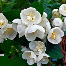 Чубушник, известный также как жасмин садовый, — это кустарник, который окутывает сады волшебным ароматом. В летние месяцы он покрывается обилием белоснежных цветов, напоминающих звезды, которые излучают сладкий, насыщенный запах, привлекающий бабочек и пчел. Листья чубушника темно-зеленые, глянцевые